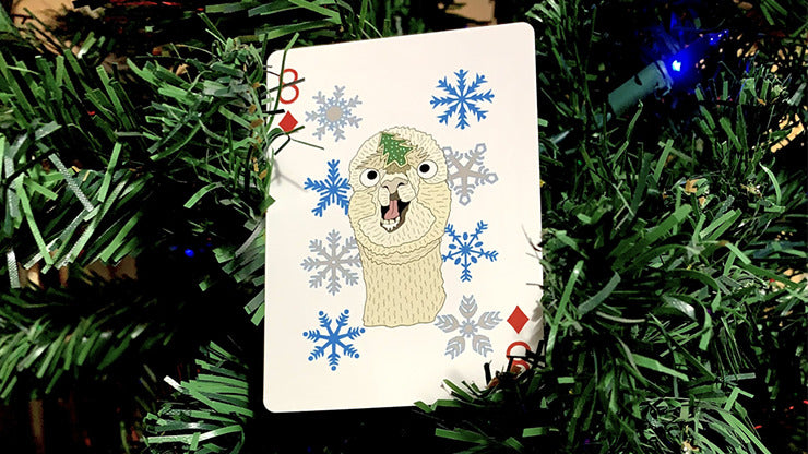 The Christmas and Kid's Sized Christmas decks have been redesigned to bring you some fluffy holiday fun. The alpacas are adorned with antlers, hats, scarfs, cookies, candy canes and holly. The suits for these are the following: presents (Hearts), Christmas trees (Clubs), snowflakes (Diamonds) and snow/ice on the Spades. The main pips on the numbered cards of the Kid's deck have been removed so your kiddos can get a better look at the animals! On the jokers you'll find a cheeky alpaca spitting your way. Ba Humbug!