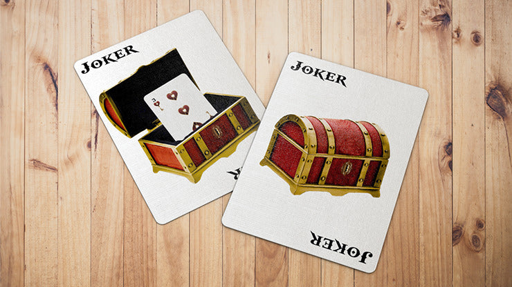The two Jokers in the deck are different and play around with the story to reveal the coveted chest content. However, the hidden treasure are not coins or jewels, but a fantastic card revelation that will delight card magicians.