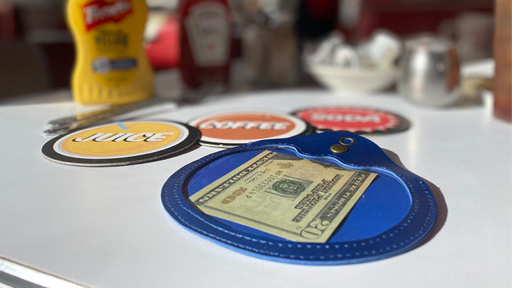 You remove three drink coasters from a smart looking blue snap case. Each coaster has a different drink printed on it; Juice, Coffee and Soda. Explain that you're going to get the spectator to choose one of the three drinks. You are SO confident that you already KNOW which drink they're going to pick you're willing to give them the $20 bill if you're wrong. But if you're right, then they have to buy you a drink. The spectator agrees to the wager, is handed the $20 to drop on their drink of choice. They make an ABSOLUTELY FREE CHOICE. You then reveal an indelible prediction left in full view from the very beginning that reveals their chosen drink!