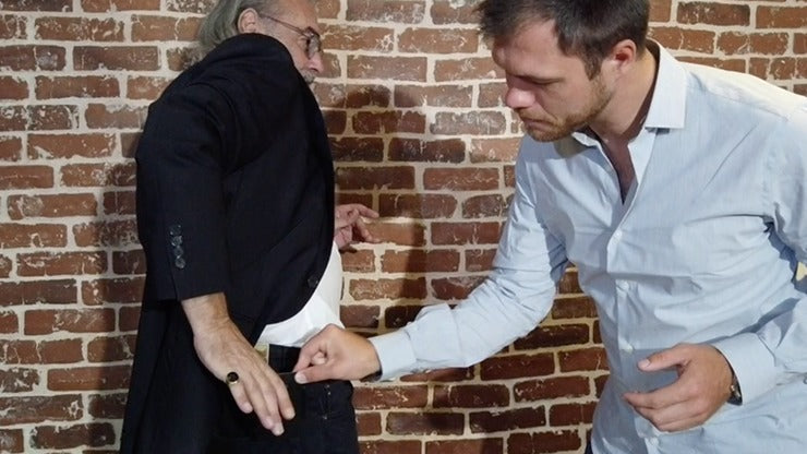 5. He rolls up his sleeves and clearly shows his two empty hands.