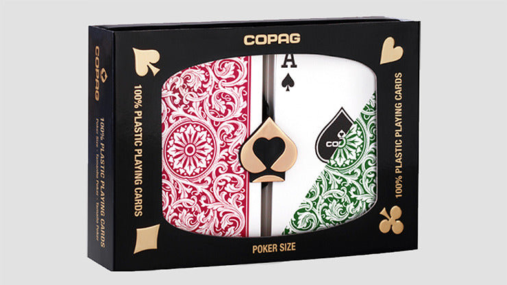 Copag 1546 Plastic Playing Cards Poker Size Regular Index Green and Burgundy Double-Deck Set