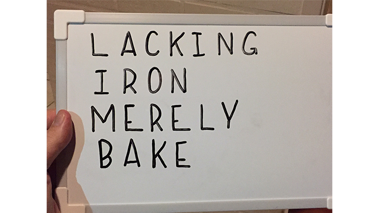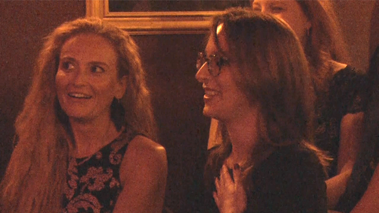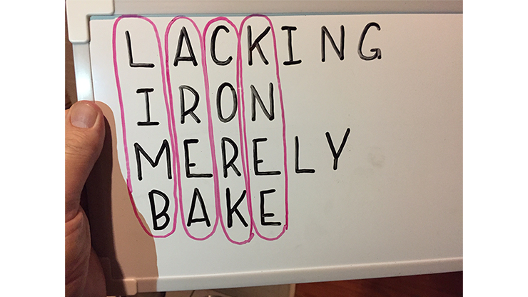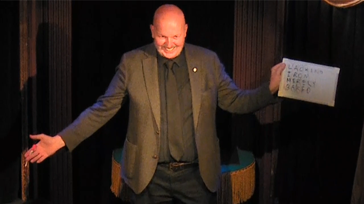Without asking a single question, the performer quickly rattles off several details about the word: "I'm getting nothing. Maybe that's the point. I'm sensing an absence, something missing..." He writes a word on a white board or pad. He asks the spectator to name her word: "Lacking". The performer shows his board: he has written "Lacking".