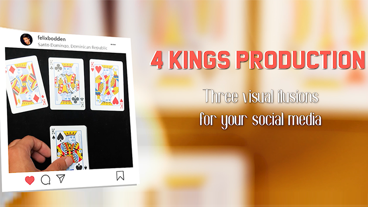 - 4 king production: Produce the four kings from the deck in the most amazing way you have ever seen. You will not even be touching the deck while they will emerge from the inside!