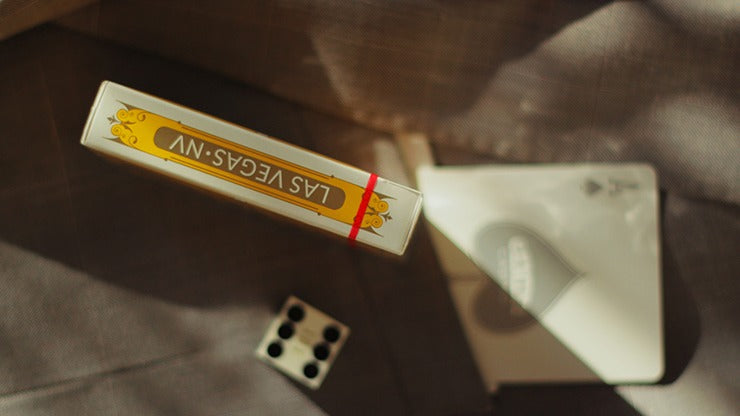 Gemini is a fictional casino deck inspired by treasured classics like Dunes Casino and Jerry's Nugget Casino playing cards. Gemini was made to look like a vintage deck you might find in an old Las Vegas warehouse from the '70s. The Yellow edition features silver metallic ink on face cards.