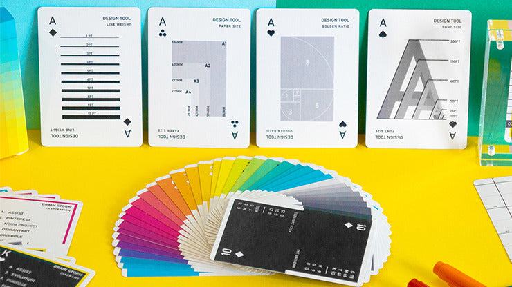 This is a purposely designed deck of cards which has a fresh take on the integrating design tools into playing cards.