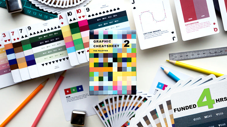 The goal of Graphic Cheatsheet V2 is to create a functional purpose within a deck of playing cards. The design keeps the color aspect and also integrate useful references that can be used on a daily basics.