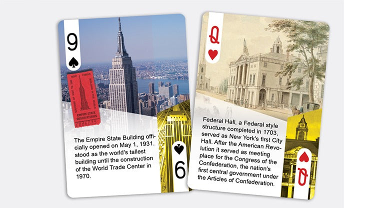 The History of New York City Playing Cards, are designed to entertain and educate the entire family. While playing, you'll learn about some of the most iconic buildings in New York City and how the city was created into the metropolis that it is today.