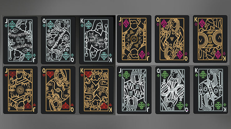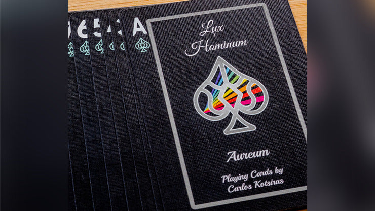 The main design of the Lux Hominum Playing Cards represents the range of colors that white light is made of.
