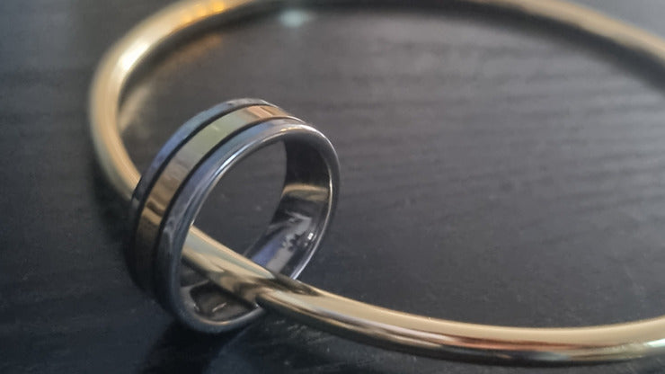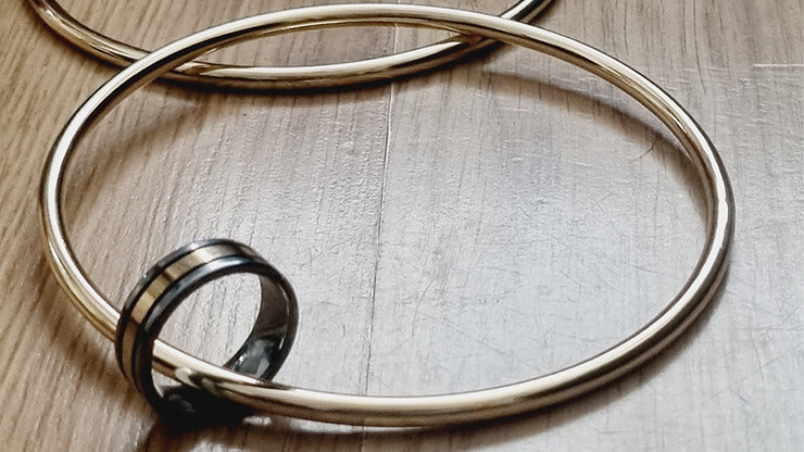 The smaller rings are a high quality gold and silver Tungsten Carbide. (NOTE: Size of boxed finger ring prop will vary and choice of size is not available. Typically USA size 12)