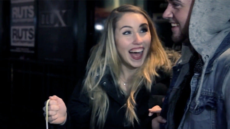 "So you understand," explains the performer, "that all of these strings will slide freely from my tightly closed fist...except for one."