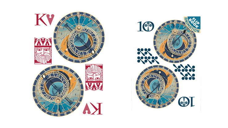 Manufactured in the USA by USPCC (Bicycle), it features a six-month cycle of the historic Orloj celestial clock in Prague which was completed in the 15th century at has multiple functions.