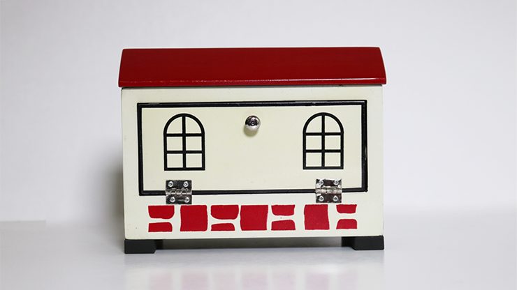 This can be used for the production or vanish of silks. It is excellent for the mis-made flag effect. Use it to perform 20th century silks using unprepared silks! Blendo effects! Silk dyeing! Cut and restored effects! Repeat 20th century effects! The cabinet is first shown empty with both doors open. It may be worked surrounded. The doors are closed, and silks are pushed into the cabinet by way of the end holes. Then they vanish, change color, are transformed, etc. Use your own silks and production items. The chimney is held in place (and removable) by a magnet so this can be used both in Gospel as well as in a children's show!
