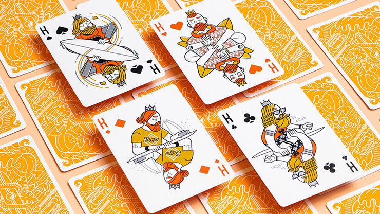 The Surfboard V2: Sunset Session is FULLY MARKED and is printed by the United States Playing Card Company. AIR CUSHION finish with their legendary Bee crushed stock. Limited to 2500 decks.