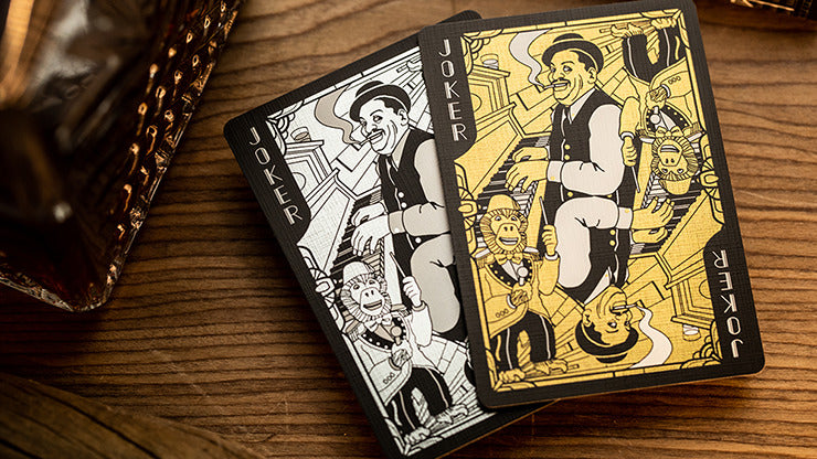 You walk into the big hall of the Grand Hotel, and immediately you're surrounded by a jolly crowd, dancing and singing to the cheerful music, rich with the tones of a saxophone. The air is full of the intoxicating smell of perfumes, sound of clinking champagne glasses, the crystal chandeliers, and the glistening of shiny attires worn by the cheering group of young party-goers. That is exactly the atmosphere of The Grand Playing cards, made in two dazzling versions inspired by the shiny world of the Great Gatsby: The Golden Glamour and The Silver Allure. Grab a glass of champagne, and get lost in the dancing world of the '20s.