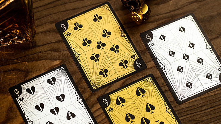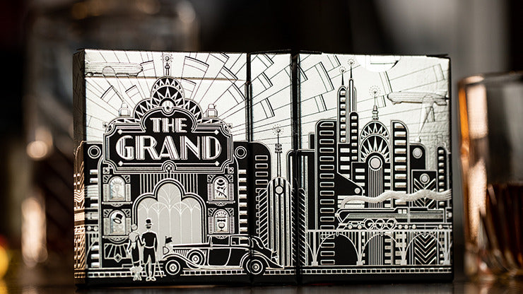 You walk into the big hall of the Grand Hotel, and immediately you're surrounded by a jolly crowd, dancing and singing to the cheerful music, rich with the tones of a saxophone. The air is full of the intoxicating smell of perfumes, sound of clinking champagne glasses, the crystal chandeliers, and the glistening of shiny attires worn by the cheering group of young party-goers. That is exactly the atmosphere of The Grand Playing cards, made in two dazzling versions inspired by the shiny world of the Great Gatsby: The Golden Glamour and The Silver Allure. Grab a glass of champagne, and get lost in the dancing world of the '20s.